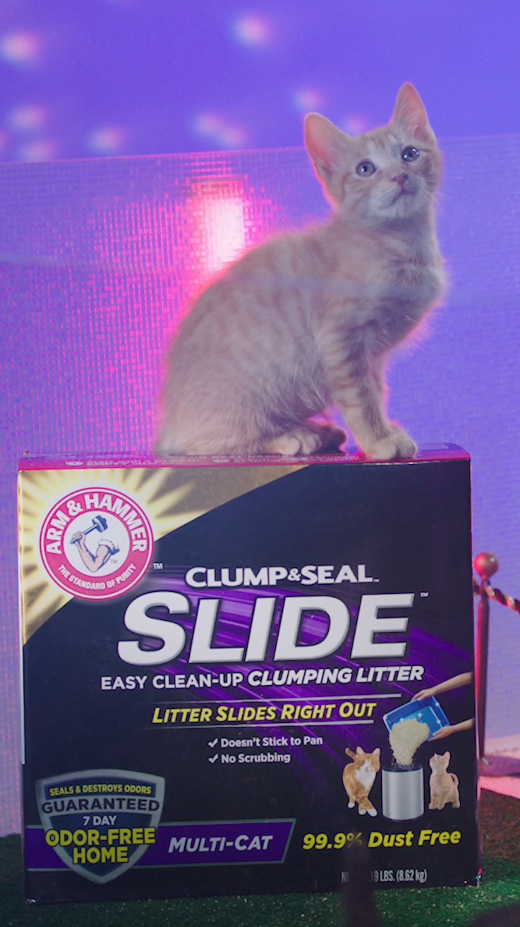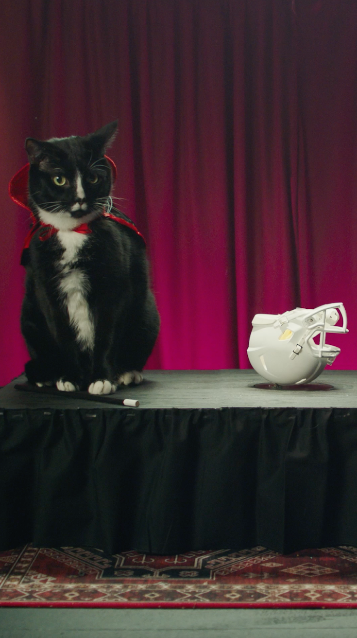 We partnered with Animal Planet and ARM & HAMMER™ SLIDE™ to bring the full Kitty Halftime show to life during Puppy Bowl XX. Creating a custom Las Vegas strip set, featuring a Whisker Wonderland chapel and exclusive kitty nightclub, the halftime show included not one, but three amazing acts. DJ Whiskers and Purr-sher performed an original song, Hairy Pawdini enchanted with a magic show, and Kitty Cat-Knievel executed a gravity defying stunt. We made additional linear promos and digital content to drive viewers to Puppy Bowl XX, including music videos, TikTok content, and access to the “VIPee” section at Club Meow.