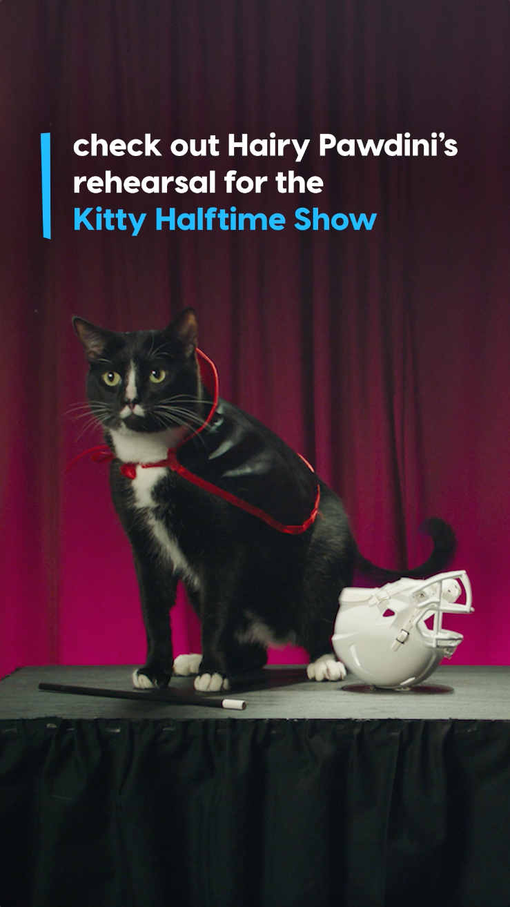 GET READY FOR A WILD NIGHT! THIS YEAR’S KITTY HALFTIME SHOW IS HEADING TO THE LAS VEGAS STRIP FEATURING A CAT THEMED CASINO FLOOR, A KITTEN STUNT SHOW, AND A SPECIAL MUSICAL PURR-FORMANCE FROM PURR-SHER.
